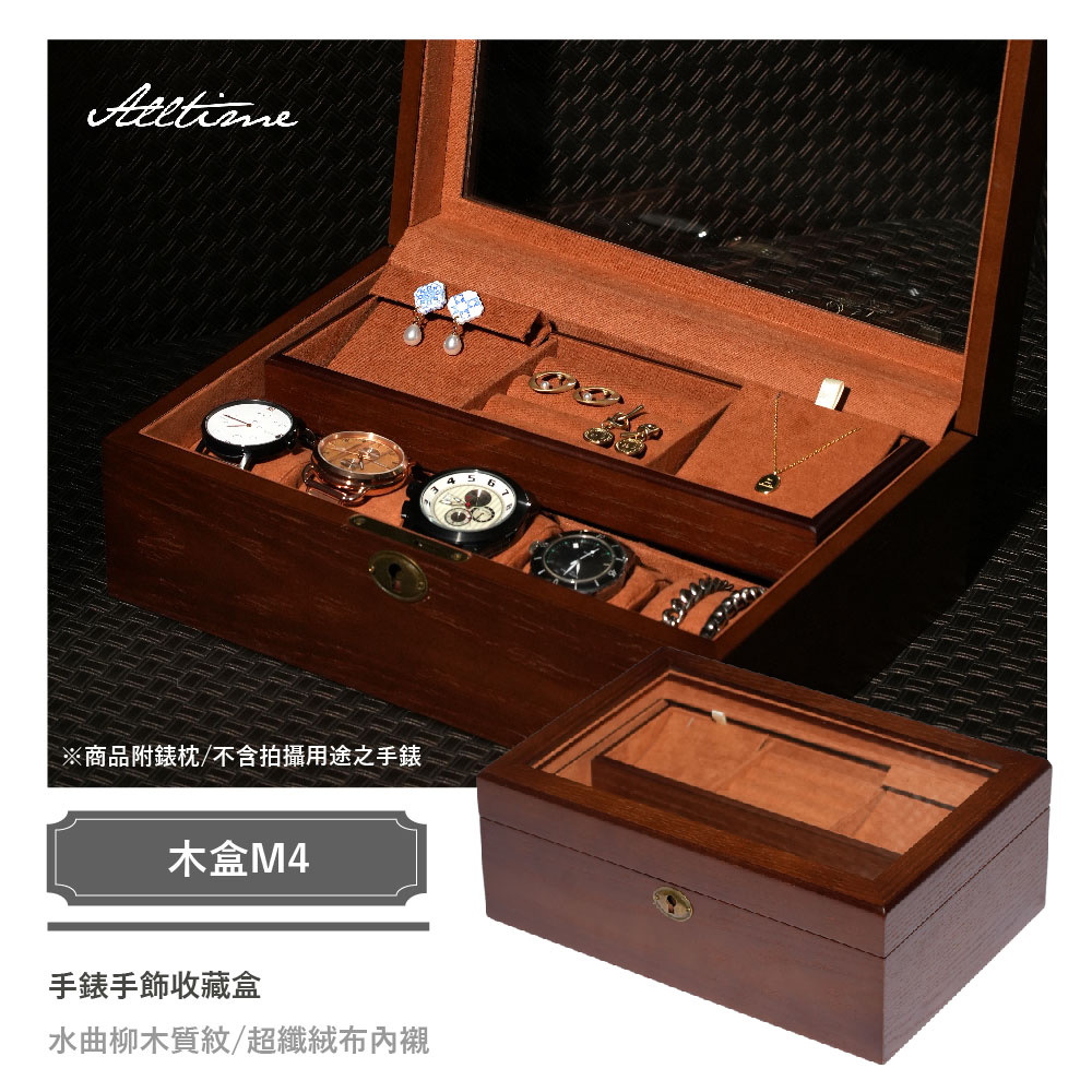 【ALL TIME 完全計時】曲柳木 手錶飾品收藏盒 5入裝 (木盒M4) 實木錶盒