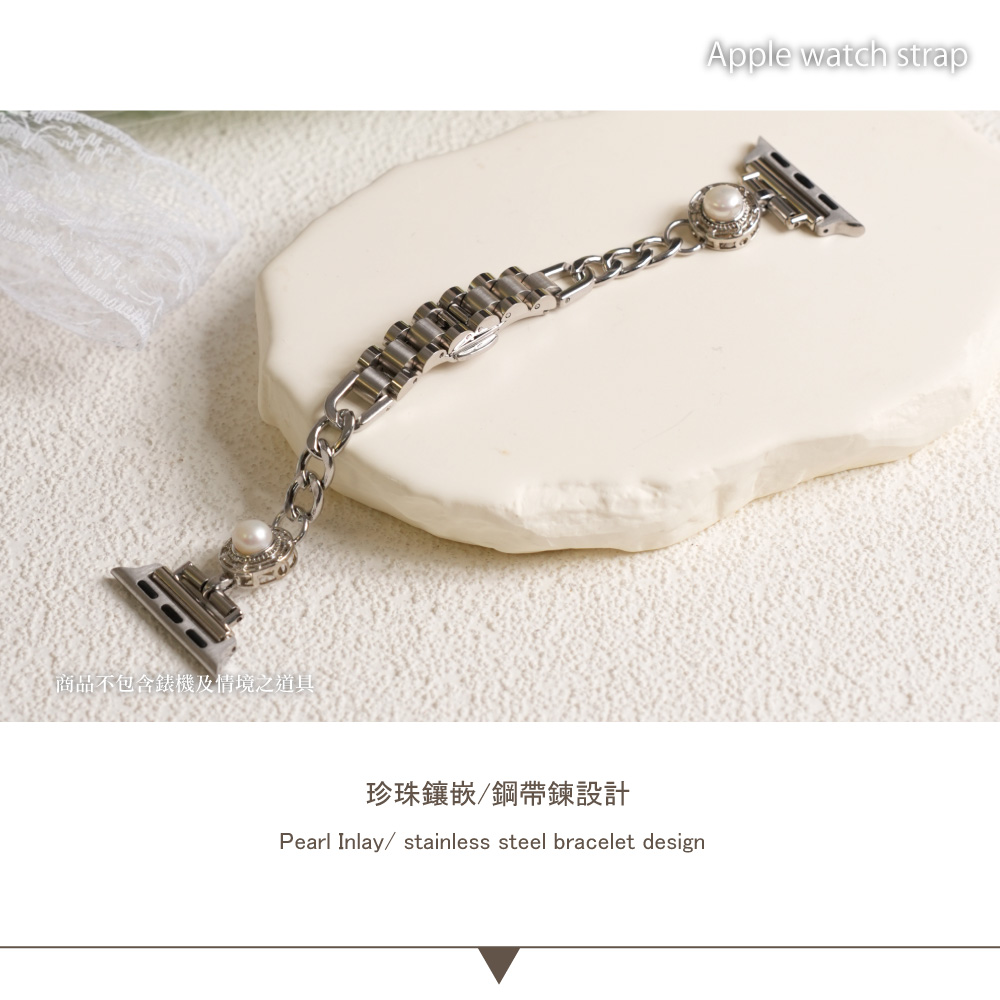 【ALL TIME 完全計時】《職人手作設計款》哥德風圓座珍珠 鋼鍊拼接 Apple watch通用錶帶 Ultra S10 S9 S8 S7