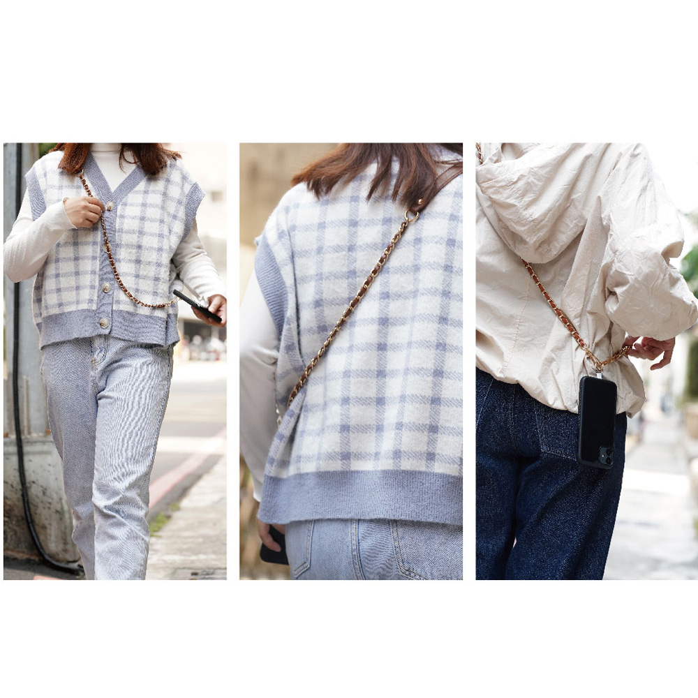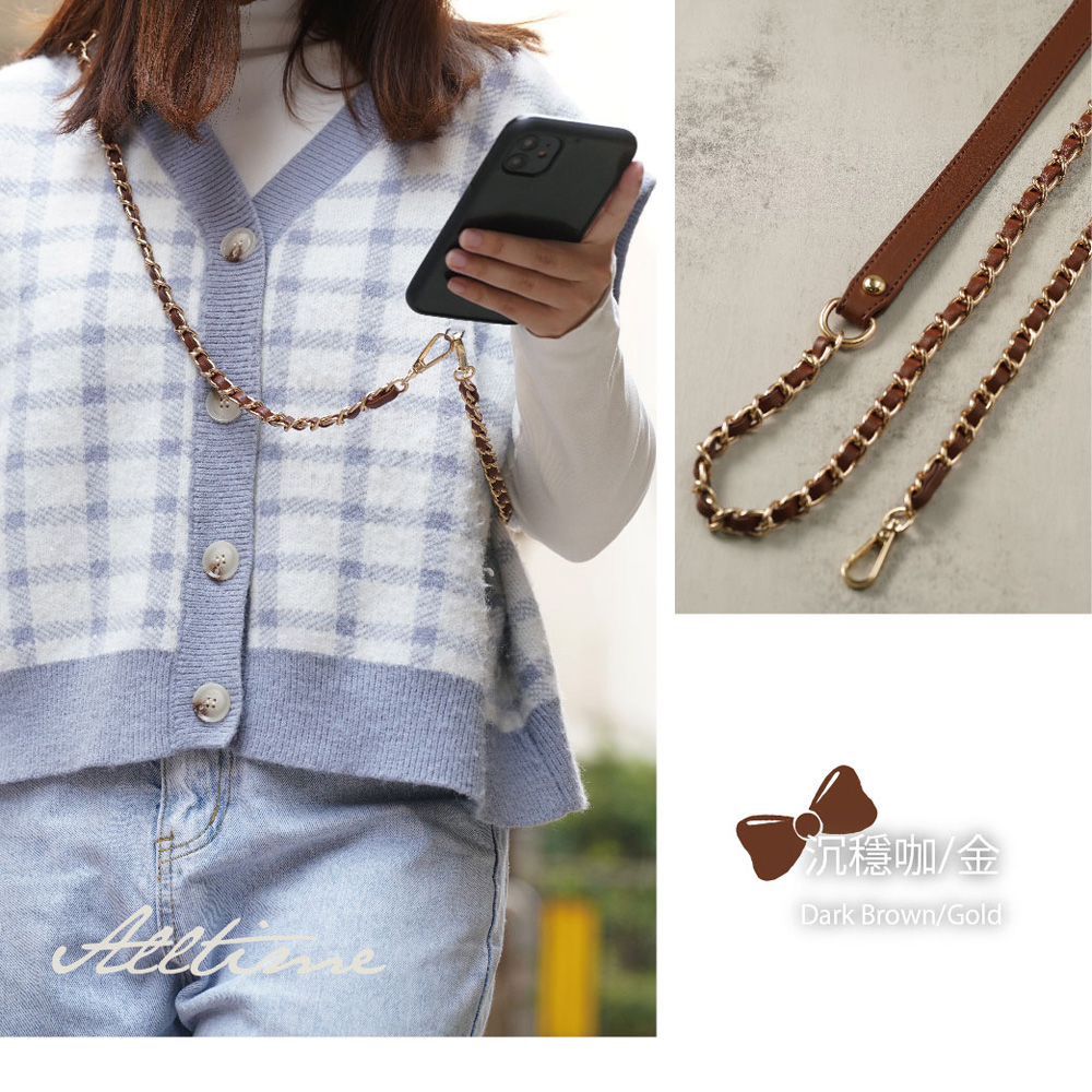 【ALL TIME 完全計時】寬肩小香風金鏈手機繩背繩 附夾片