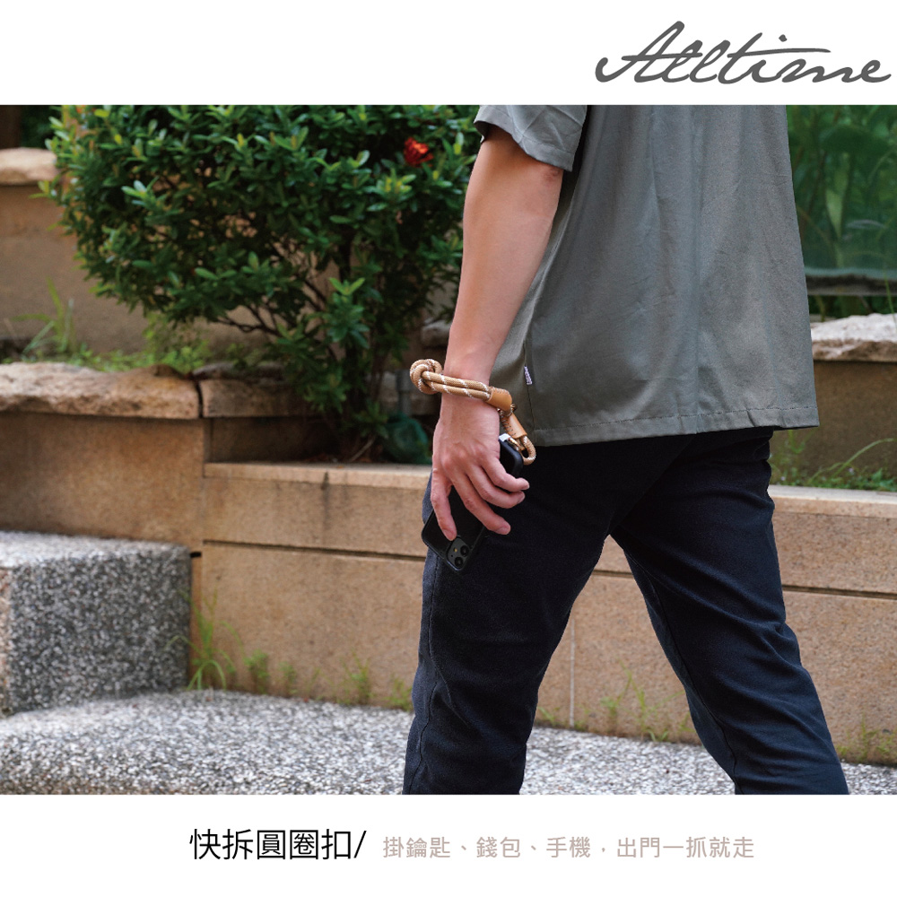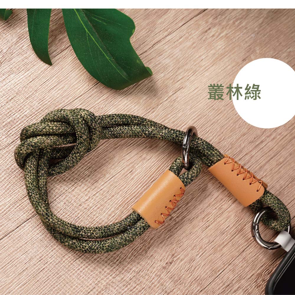 【ALL TIME 完全計時】戶外風扭結腕帶手機掛繩(綠白/綠/黑) 附夾片
