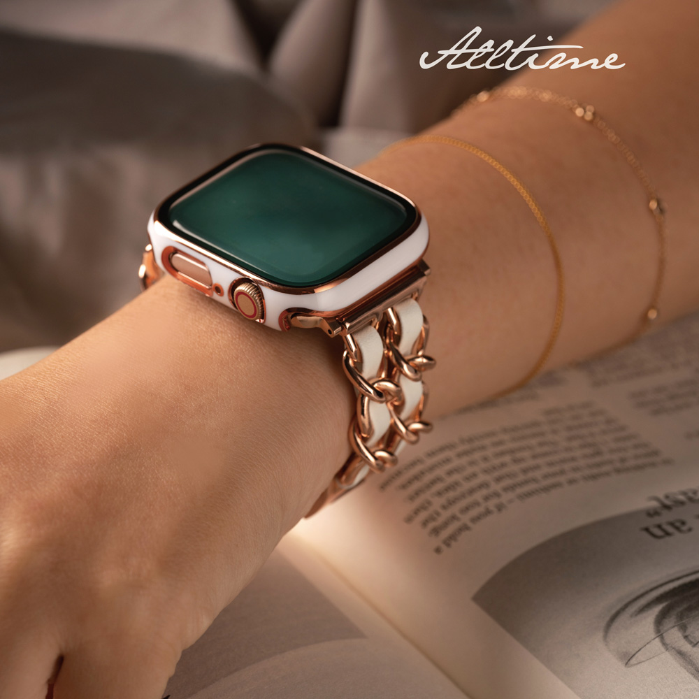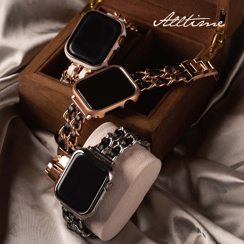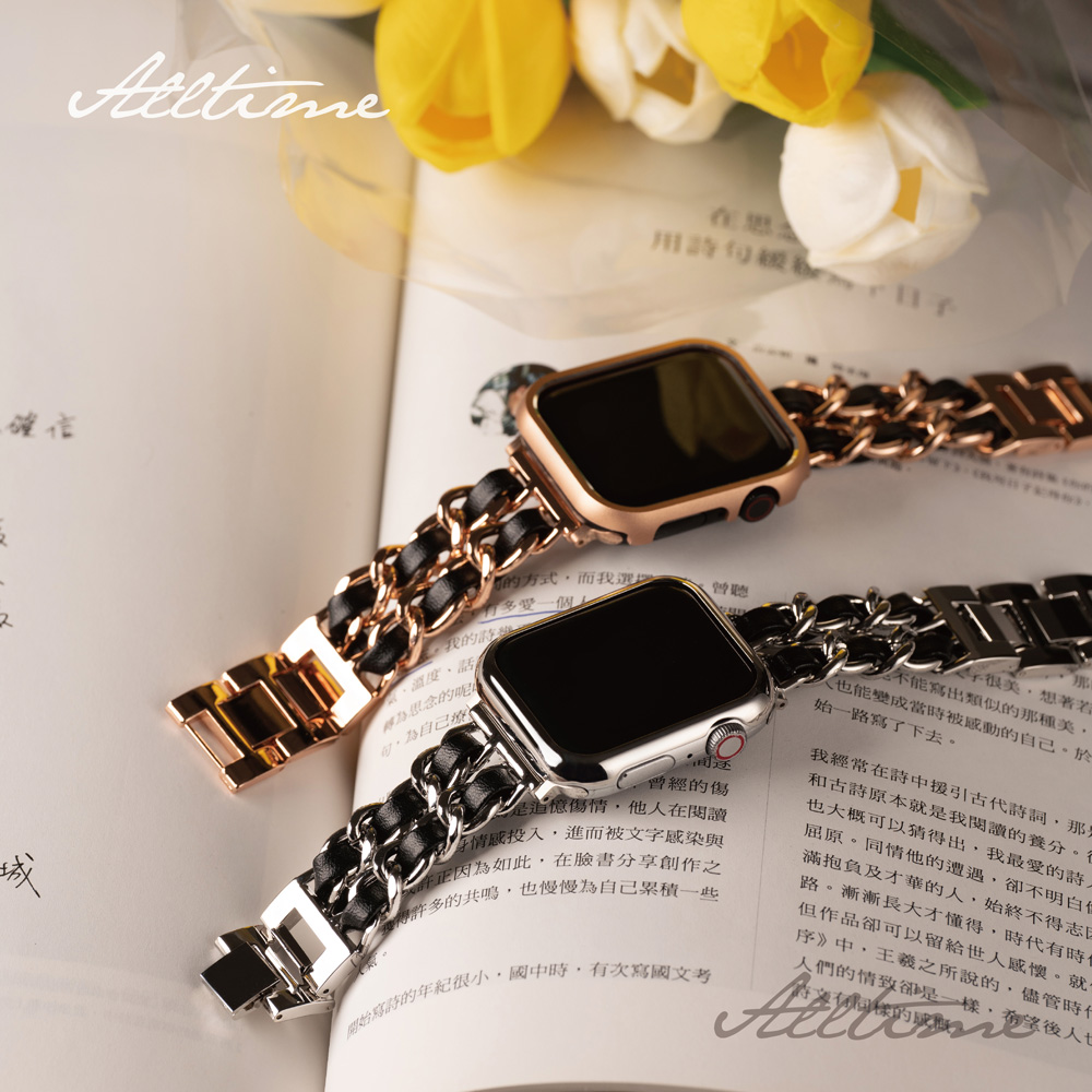 【ALL TIME 完全計時】人氣精選錶殼+錶帶套組/雙鏈皮革不鏽鋼錶帶 Apple watch通用錶帶
