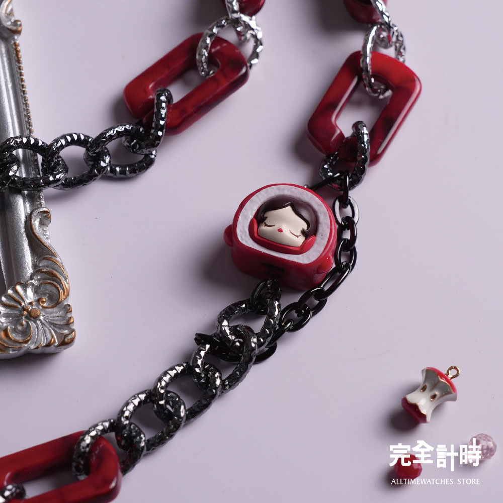 真皮手繩搭配鏈身混材質醋酸纖維,重量輕、耐磨、透光度佳,呈現出宛如飾品級的溫潤質感。